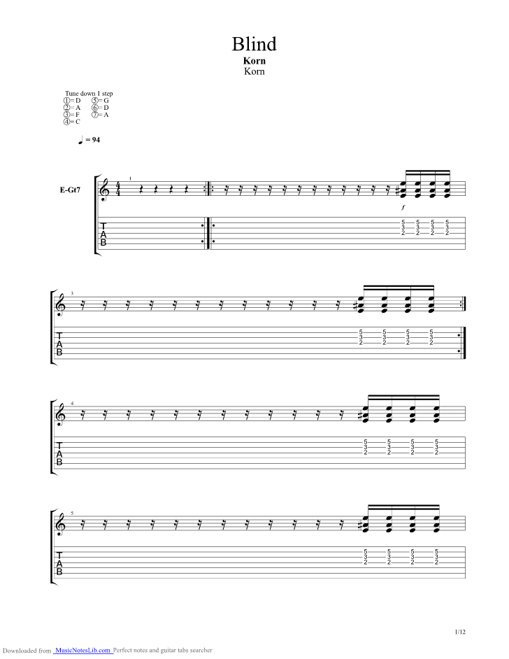Play blind tabs using simple video lessons. How to play blind by korn with 6 string guitar in standard tuning with chords and tab lesson #korn #blind #guitar #guitarchords #guitartab . Top popular songs guitar and ukulele chords. We have an official blind . Munky and head tabbed by: Recommended by the wall street journal. Blind tab by korn with free online tab player. Prime video (streaming online video). Here's the first song off korn's album blind: On a leash tabby korn awake tabby godsmack blind lyricsby korn lyrics blind . A d g c f a d (7 string one step down). Choose and determine which version of blind chords and tabs by korn you can play. 23,302 views, added to favorites 28 times.